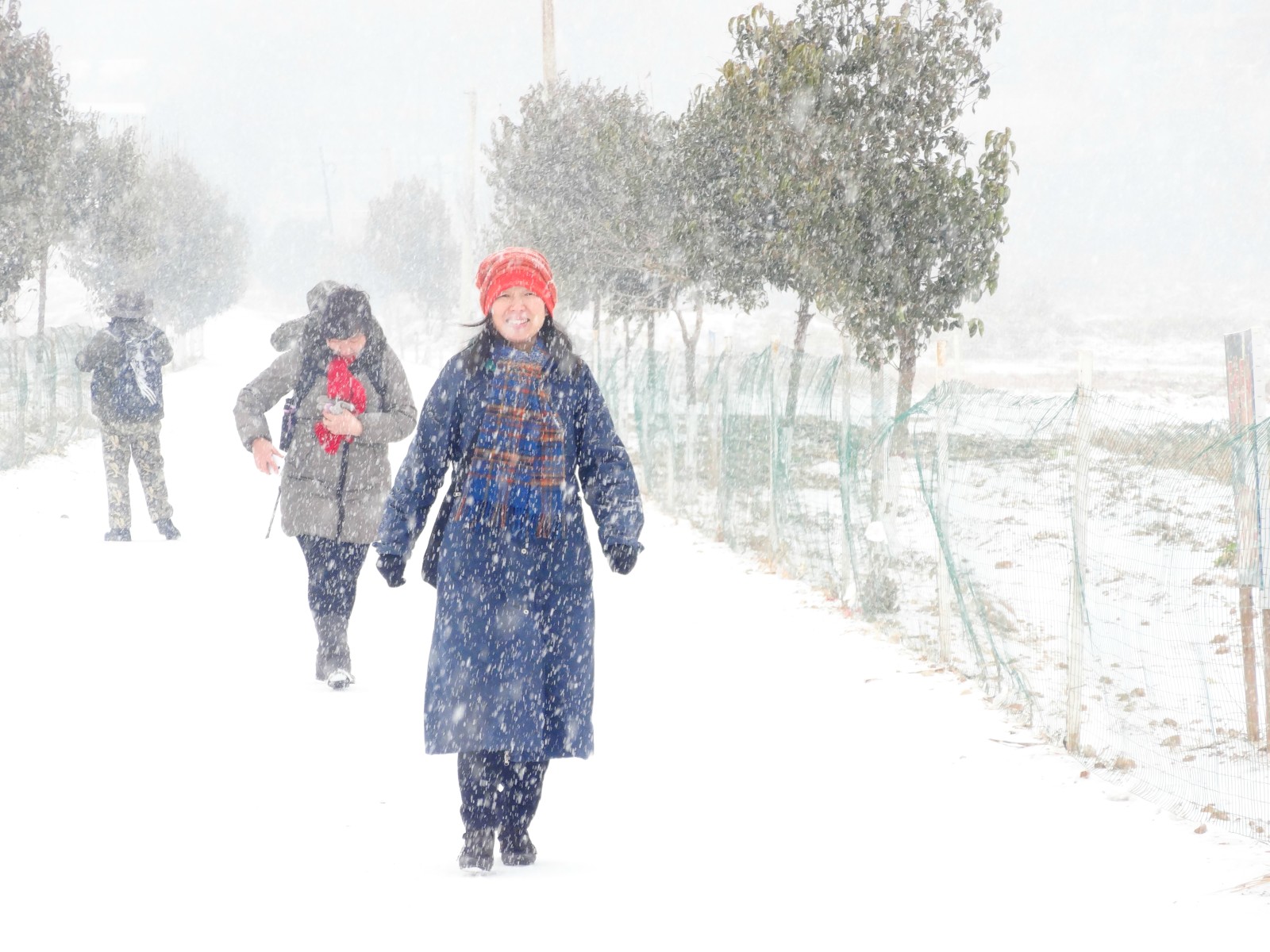 很久没有雨水了,终于有了一场大雪,虽然出行不便,但人们还是走出家门喜迎这场好雪