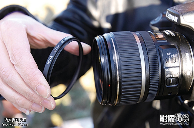 安装中灰渐变镜是一件很简单的事情,但要慢慢来,把握渐变的位置非常重要。先将滤镜架安装在镜头上,然后将滤镜片缓缓插在套座上。