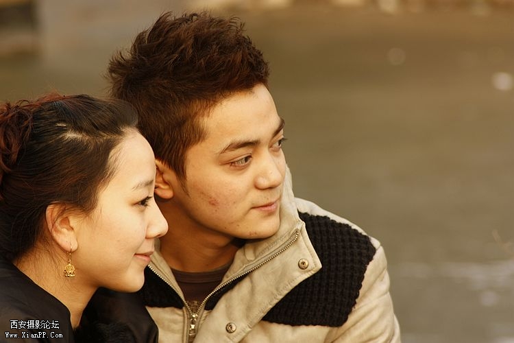 冬日暖阳下的那对情侣