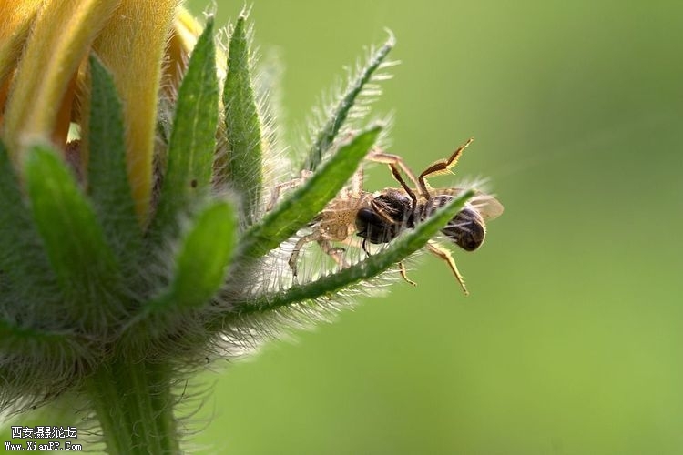 捕食土蜂的小蜘蛛