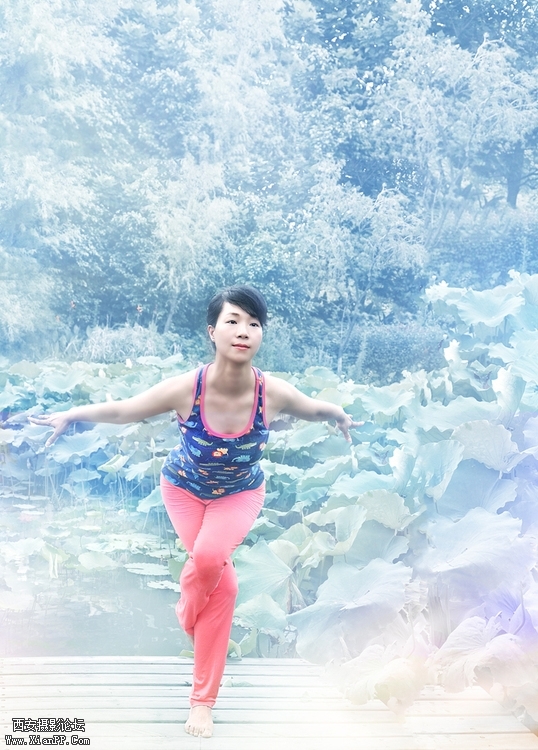 瑜珈姑娘在荷边