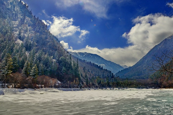 jaja 发表于 2015-3-5 21:44 冬日的九寨虽然色彩单调,但是雪后的山脉还是尽力展现着自己不一样的色彩
