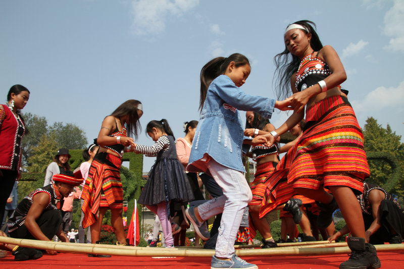 欢快的云南佤族竹竿舞