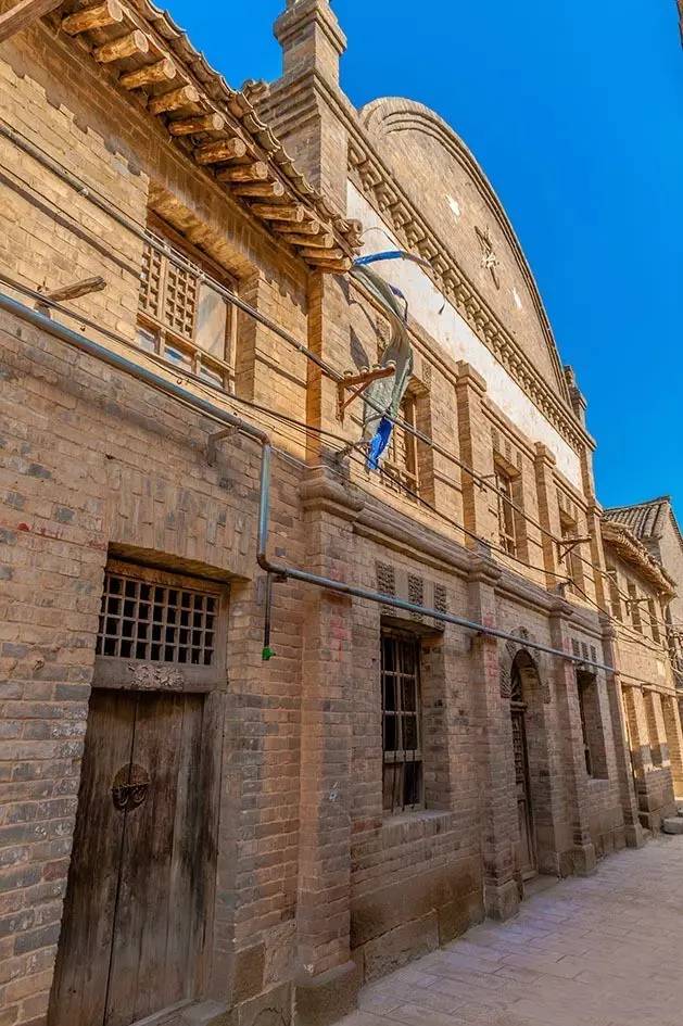 这里的民居很大的一个特点是具有中西合壁的建筑装饰形式,窗户多采用拱券式窗孔,窗孔外墙饰以“眉檐垂柱”的砖雕。