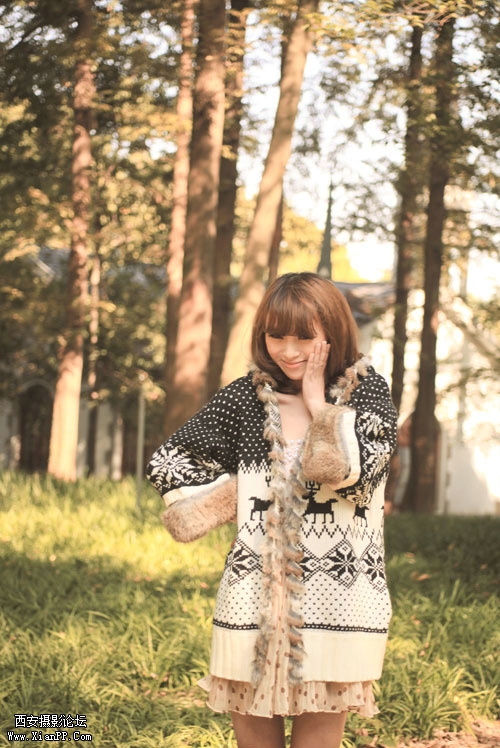 光斑下的可爱女孩