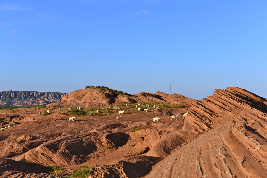 陕北靖边龙洲弯有一片美丽的丹霞地貌,放羊的汉子唱着信天游,看护着羊群,那人、那景不禁让人联想到那些耳熟能详充满诗情画意的信天游 !